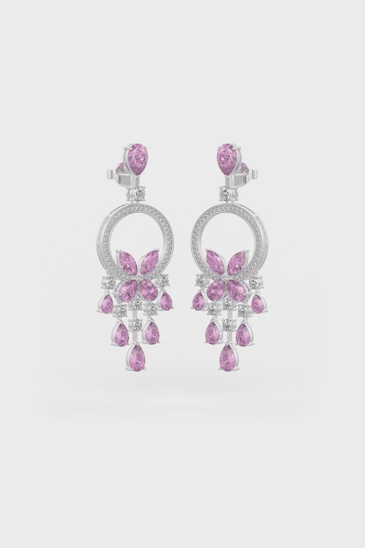 At the top of each earring, a small teardrop-shaped pink stone is delicately attached to a circle studded with shimmering white stones, creating a captivating focal point. These earrings are a true testament to elegance and craftsmanship. Whether worn for special occasions or to add a touch of glamour to your everyday attire, our Pink-Grapevine Teardrop-Earrings are sure to turn heads and spark conversation wherever you go.