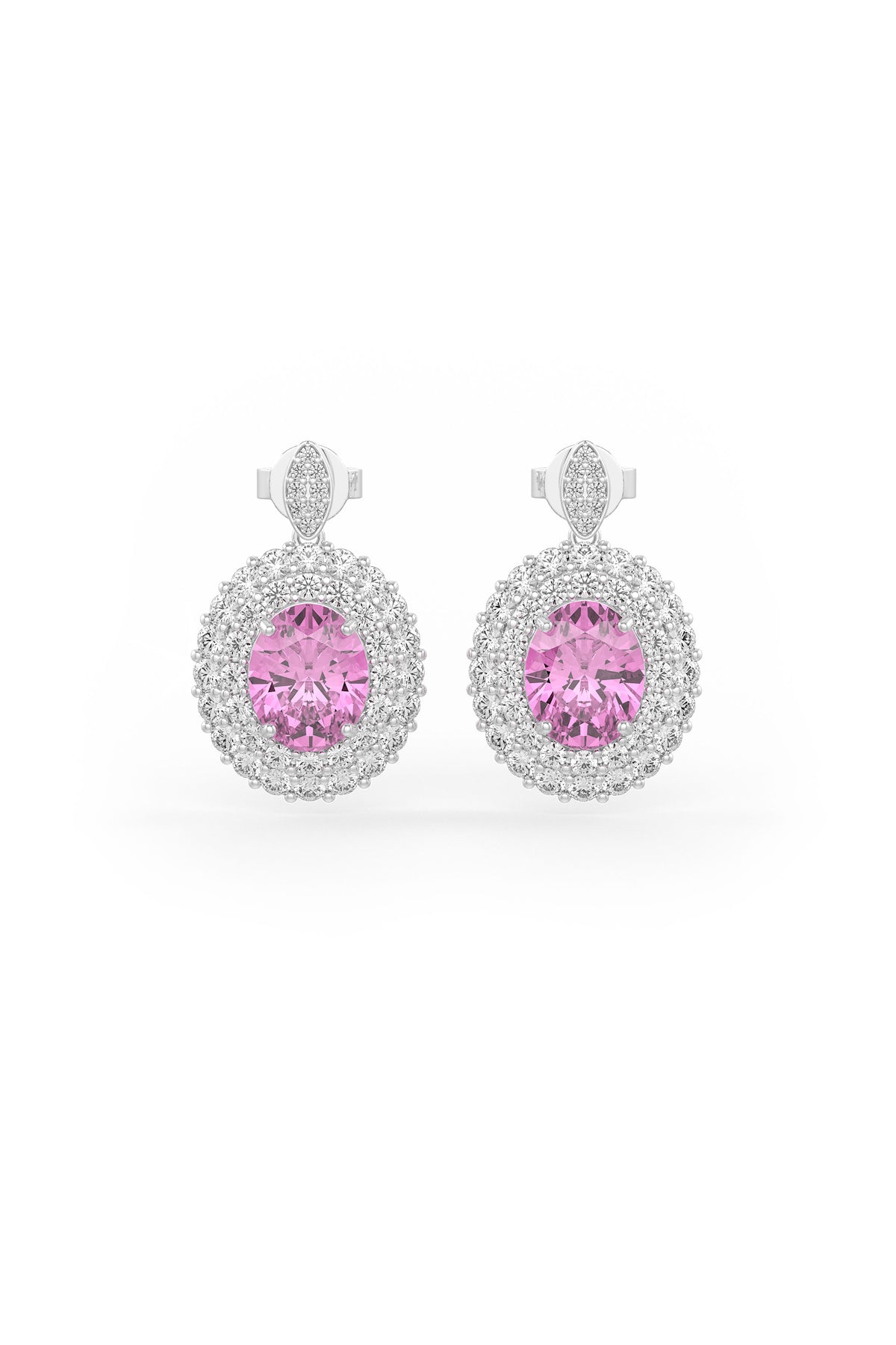 Bask in the radiance of these dazzling earrings, featuring a centerpiece cubic zirconia stone encircled by a sparkling halos of finely set zircon stones. Handcrafted in 92.5 sterling-silver and rhodium-plated for extra shine, they are the epitome of refined glamour.